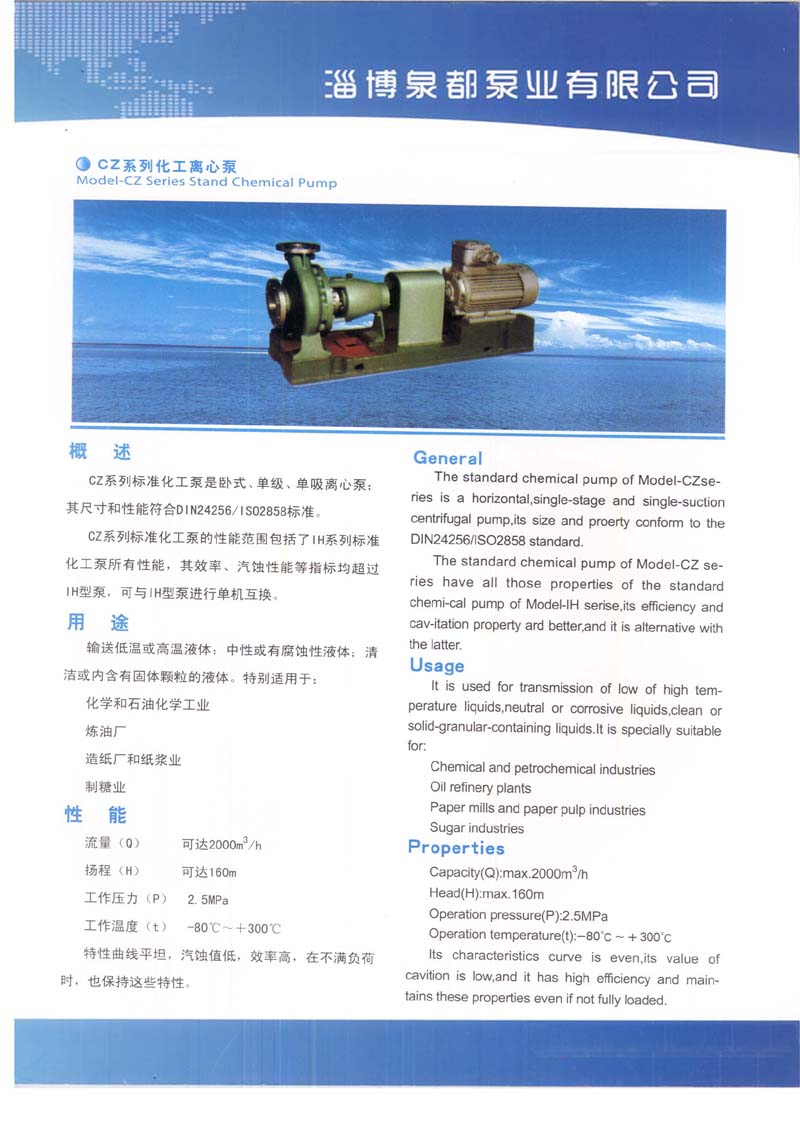 > CZ系列化工离心泵